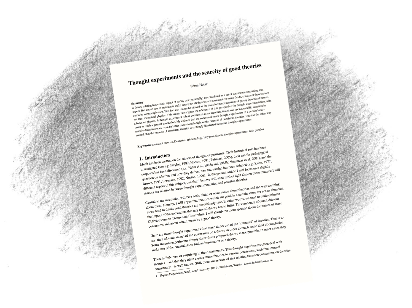 Under avdelningen Tankeexperiment i Svenska Fysikersamfundets tidskrift Fysikaktuellt har jag i en serie nummer skrivit om olika tankeexperiment hämtade från fysiken.